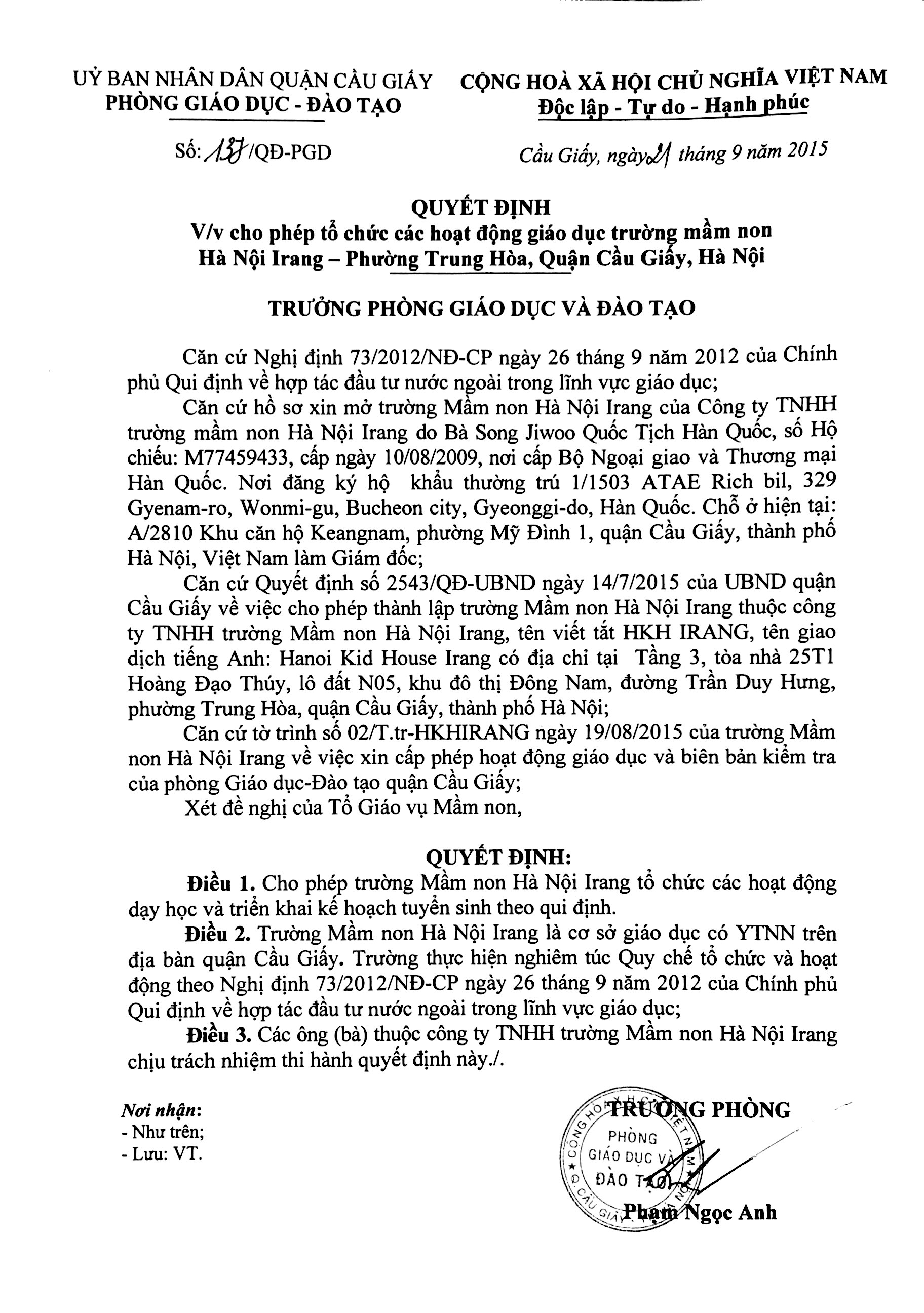Sự tận tâm của các luật sư IPIC đã tạo nên thành công dự án trường mầm non IRang, Giấy phép hoạt động là thủ tục sau cùng để trường đi vào hoạt động đúng quy định của pháp luật.