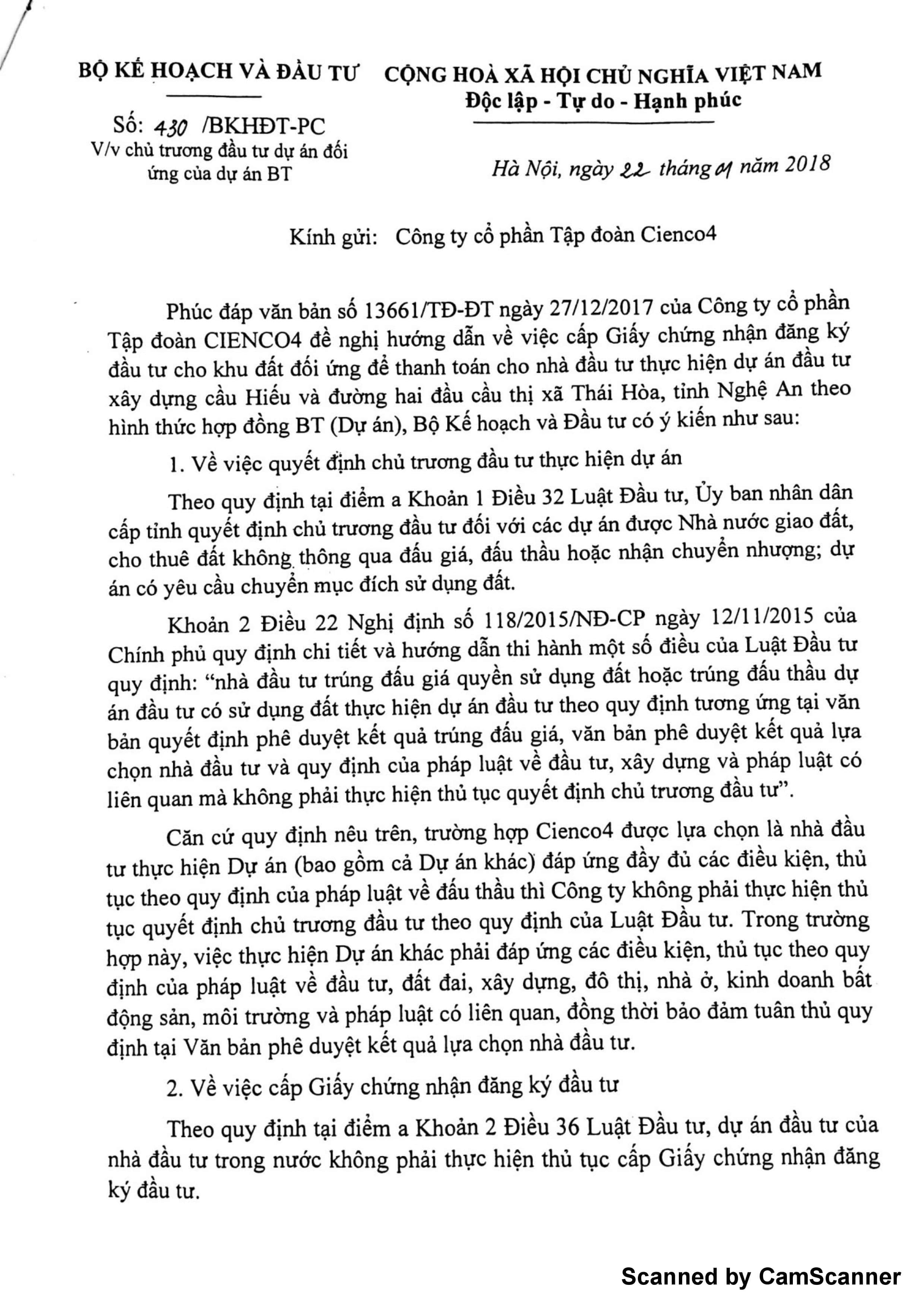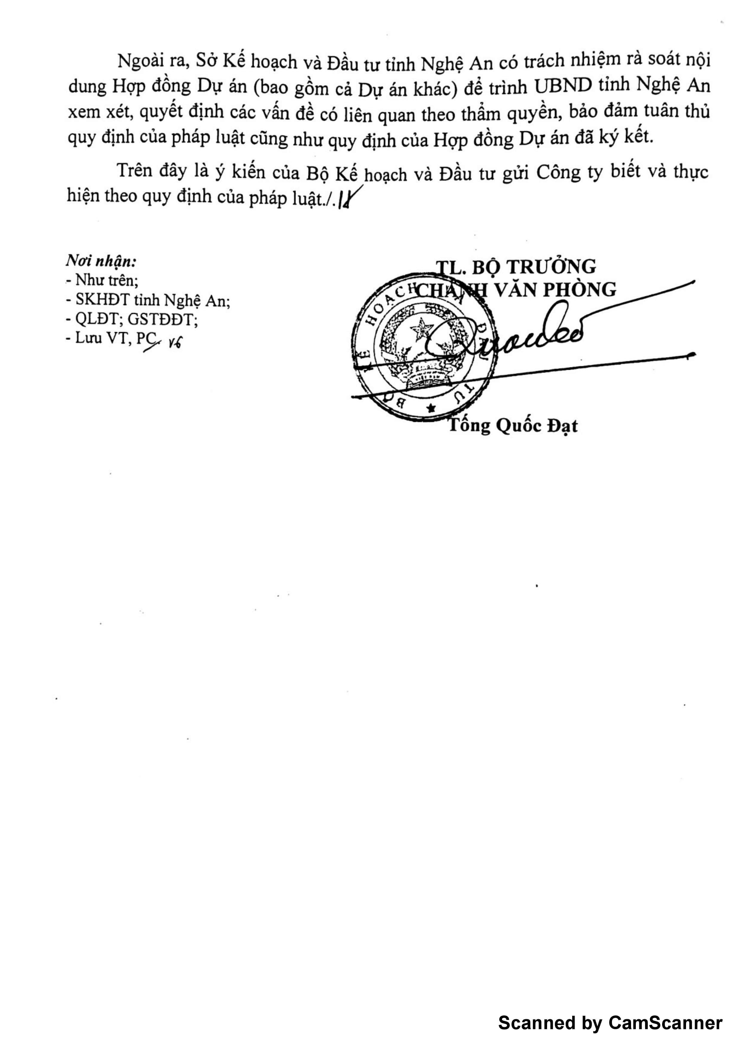 II. Nội dung trả lời của bộ kế hoạch đầu tư